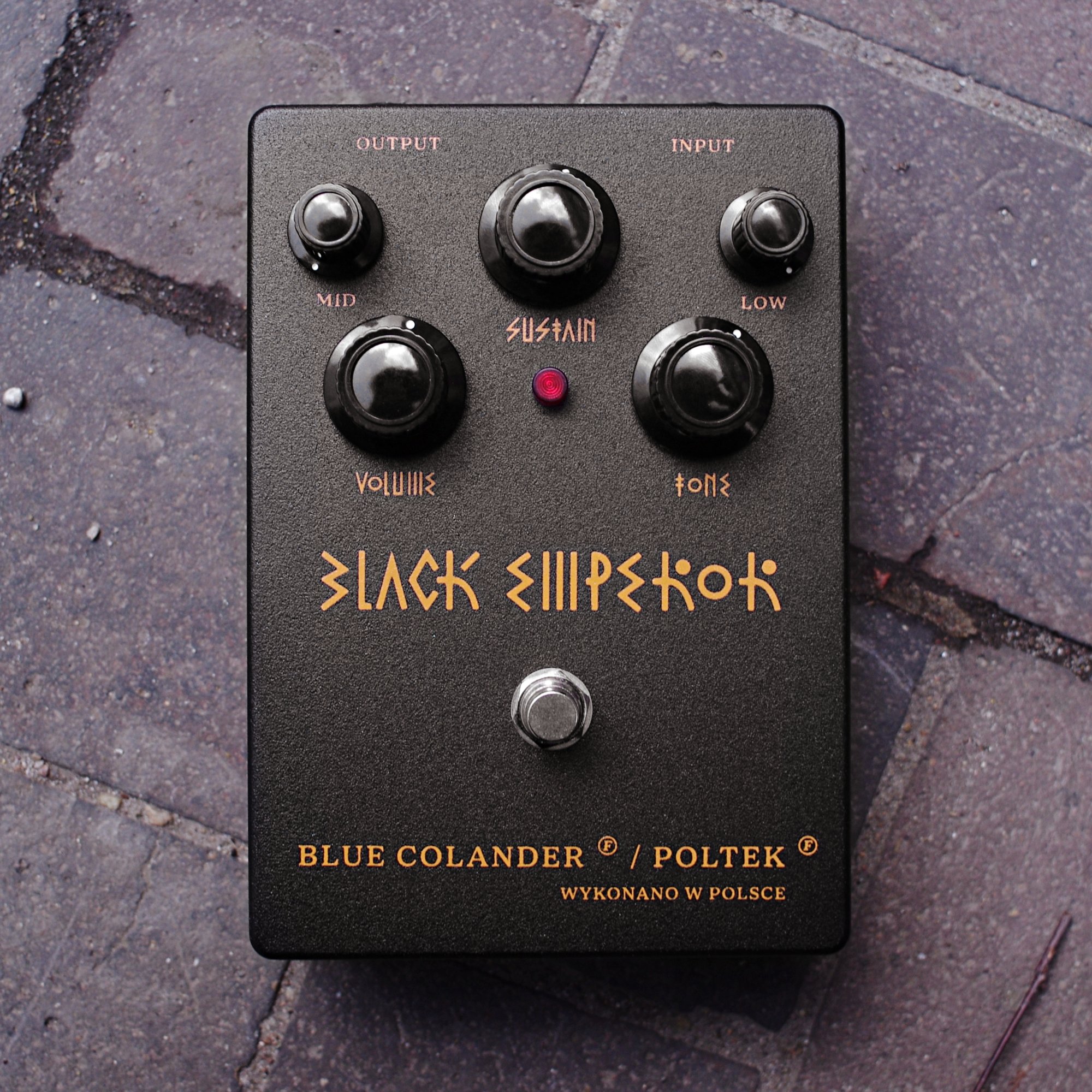5 knob version is extended with two extra controls. With MID knob set to minimum and LOW knob maxed there is 'stock' Black Emperor sound. MID increases midrange content and LOW reduces deepest bass without affecting overall fuzz character or tone knob response. Inclusion of these bring extremely diversified tonal range to fit in many genres and band scenarios.